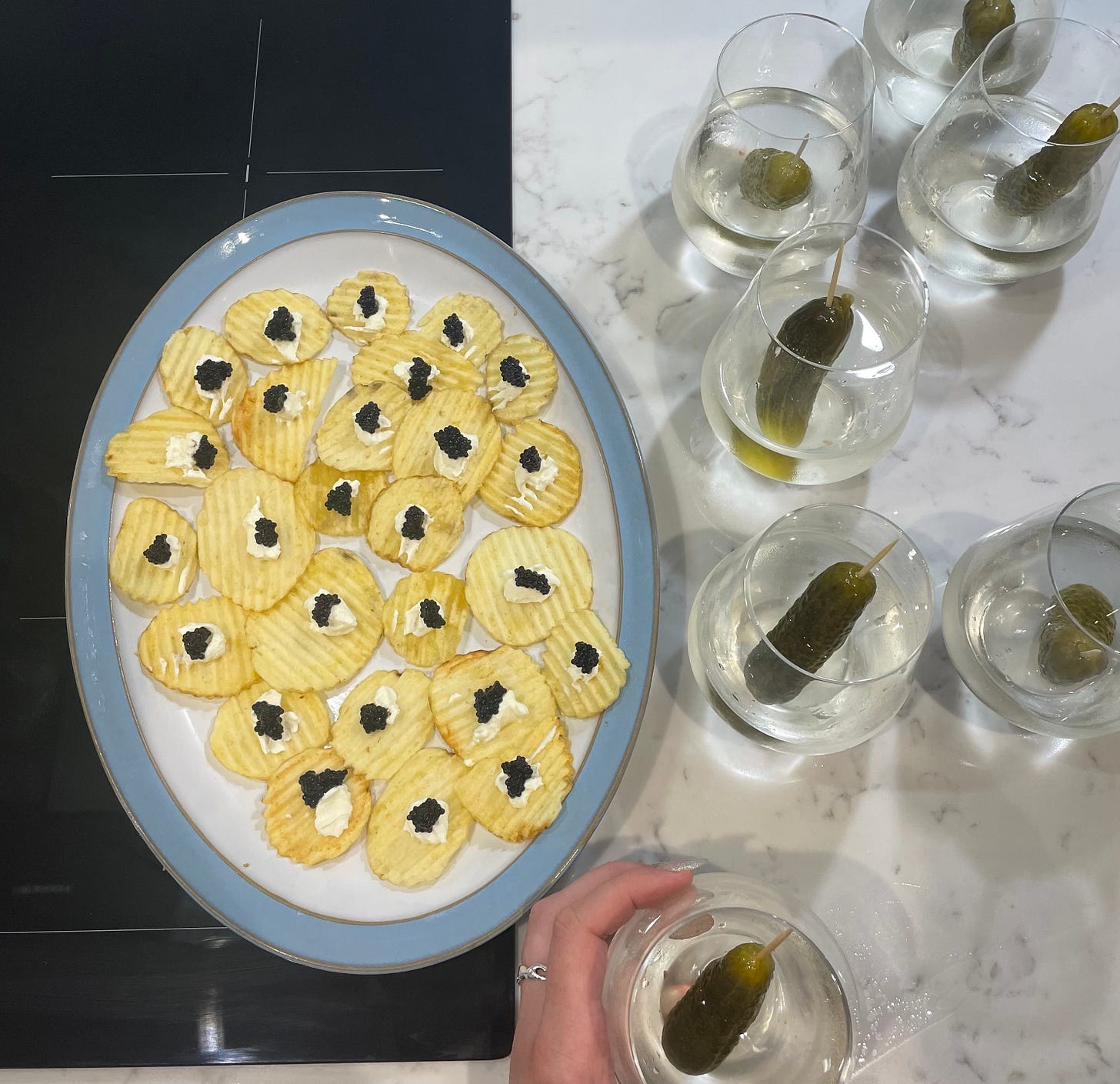 I made dirty martinis and caviar crisps for my family over the festive period, which they absolutely hated. I adore them for humouring me, though, and for giving my culinary whims a try. Vodka, dry vermouth, dill pickle brine, shaken with ice and garnished with a whole chubby gherkin on a cocktail stick. Salty crinkle cut crisps with soured cream and fish roe. A guaranteed pause for thought at your next dinner party.